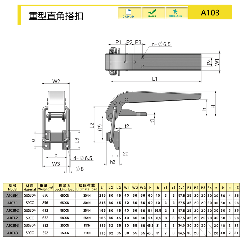 | model | Длина (мм) | Материалы | Вес (g) | Сила блокировки (N) | Предельная нагрузка (N) | 3D |