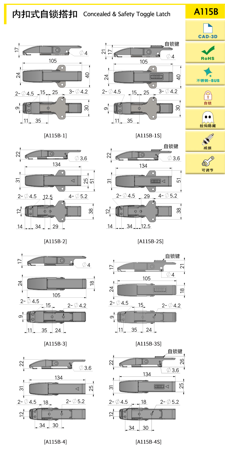 | A115B-4 | Автоблокировка, внутренняя пряжка | 134 | sus304 | 139.51 | 300 | 4000 | Download |