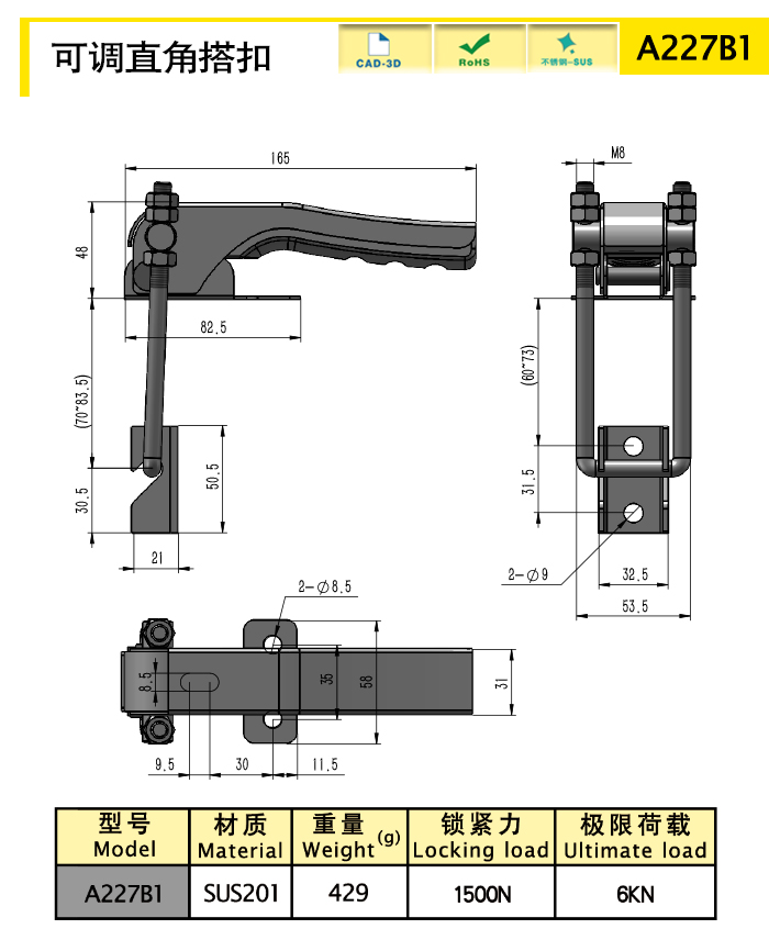 Регулируемая прямоугольная пряжка