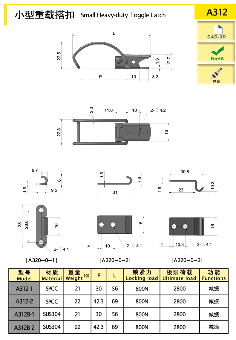| model | Функции | Длина (мм) | Материалы | Вес (g) | Сила блокировки (N) | Предельная нагрузка (N) | 3D |