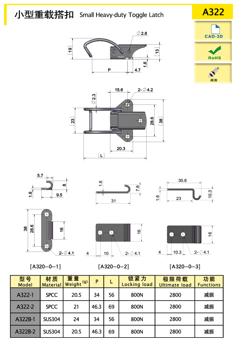 | model | Функции | Длина (мм) | Материалы | Вес (g) | Сила блокировки (N) | Предельная нагрузка (N) | 3D |