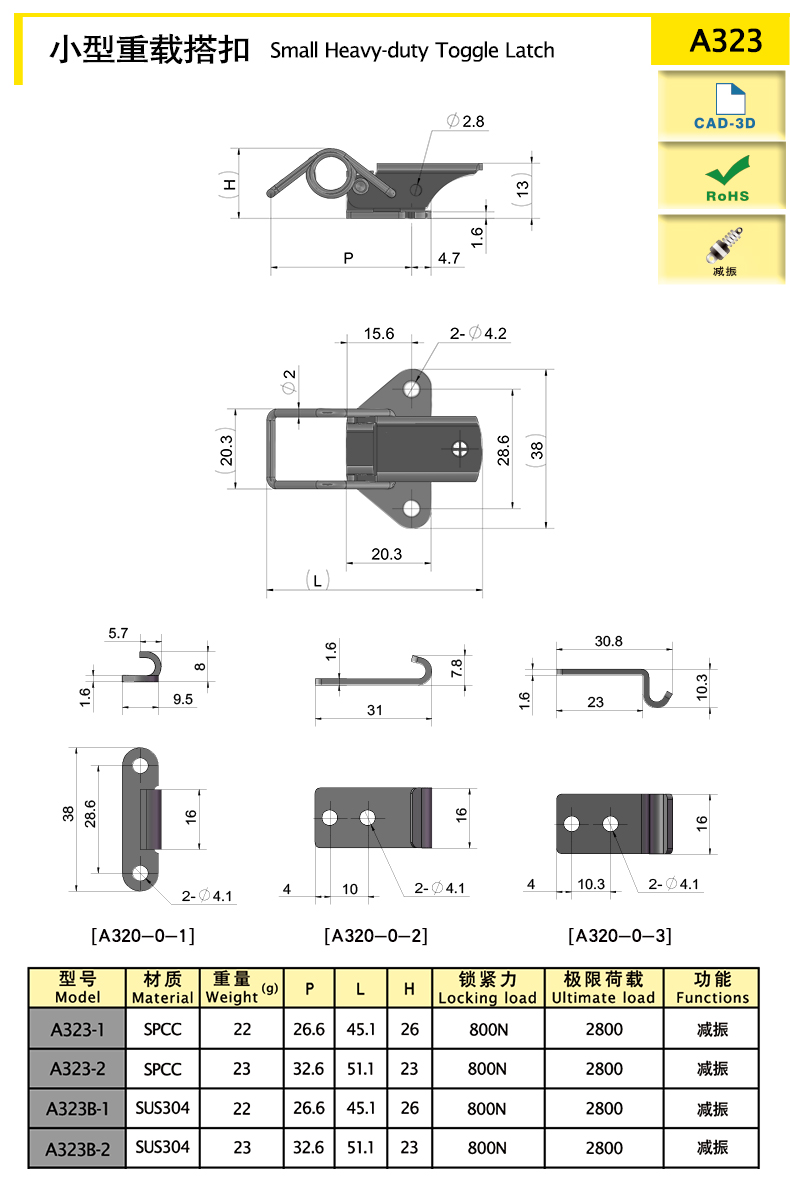 | model | Функции | Длина (мм) | Материалы | Вес (g) | Сила блокировки (N) | Предельная нагрузка (N) | 3D |