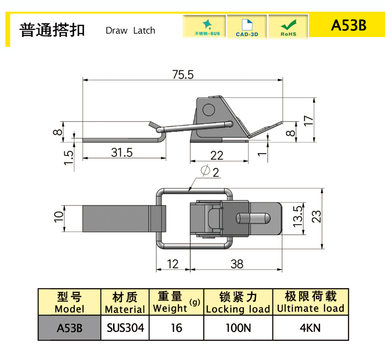 A53B Обыкновенная пряжка 75.5 СУС304 16 100 Download