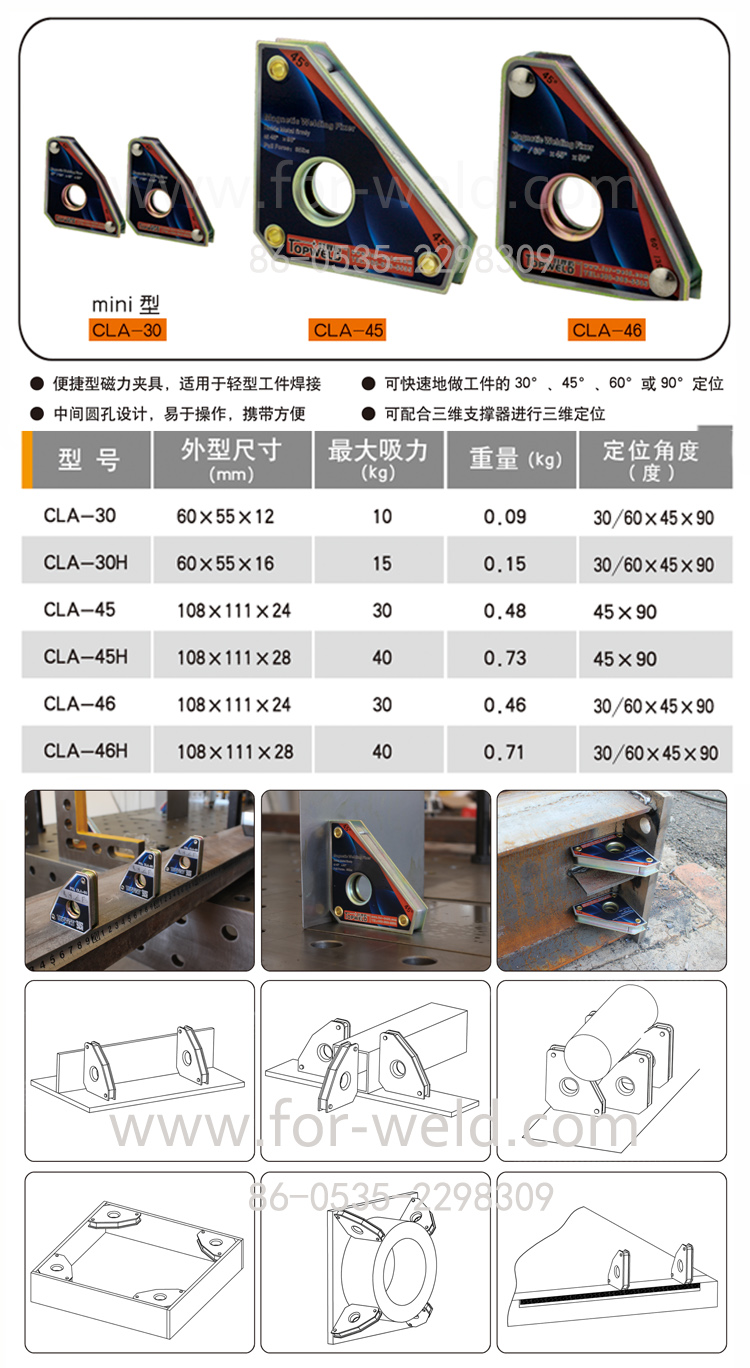 | CLA-46H | / | 30/60*45*90 | 40 | 108x111x24 | Угловое позиционирование | Download |