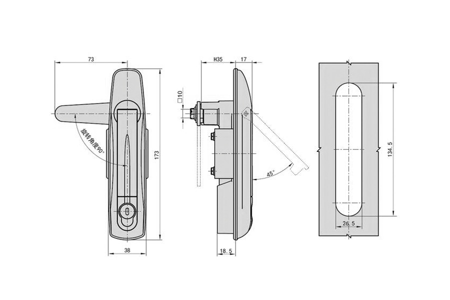Материал: корпус замка из алюминиевого сплава, большая оболочка сердечника, ручка из цинкового сплава, ось поворота, небольшая оболочка сердечника, монтажная панель A3, замок.