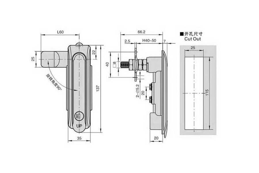 Материал: замок из цинкового сплава, замок A3, монтажная панель