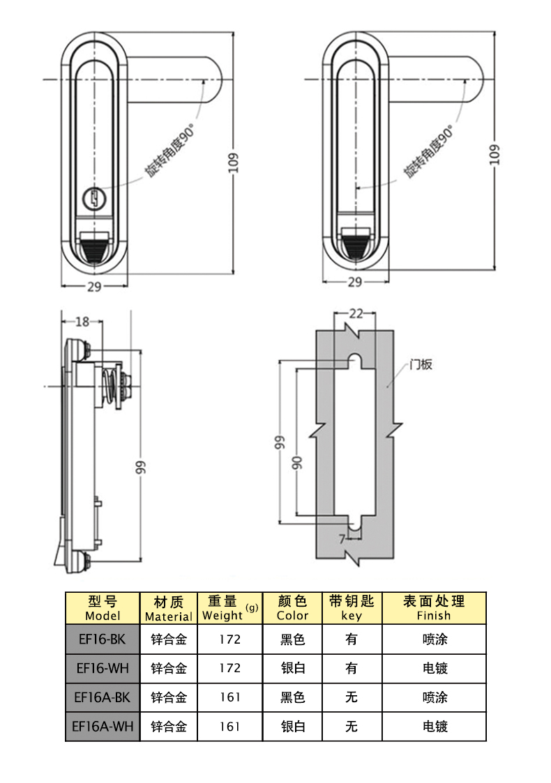 | EF16-BK | плоский замок | Цинковый сплав | 109 | Нет | Распыление | 1 | Download |