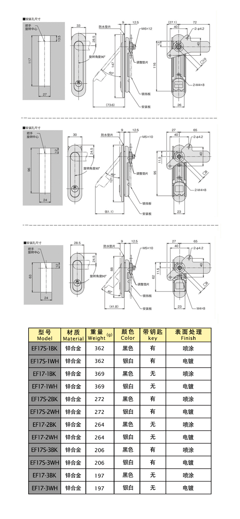 | EF17-3SR | плоский замок | Цинковый сплав | 88 | Нет | Гальванизация | 1 | Download |