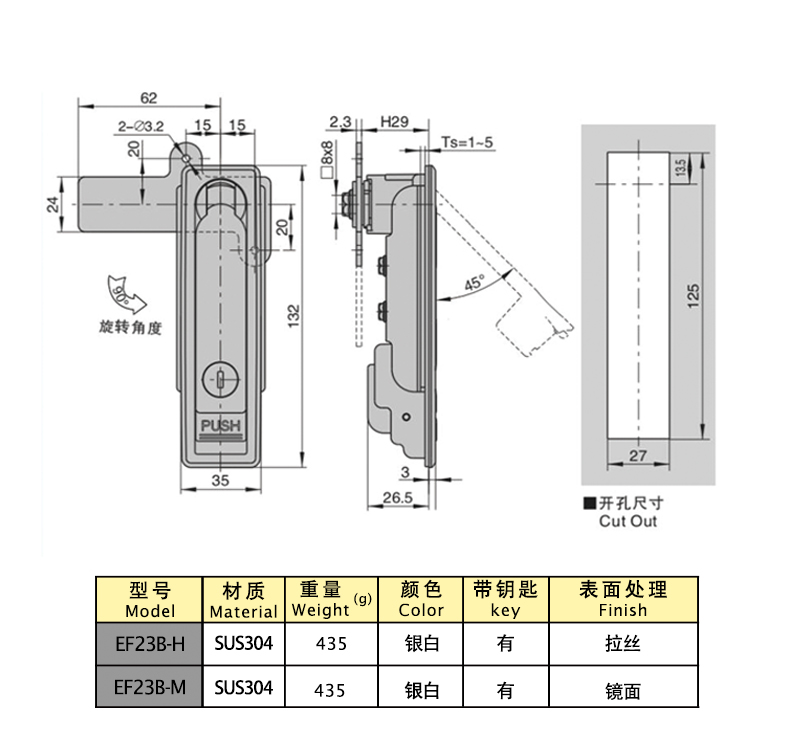EF23B-H плоский замок СУС304 132 Есть Матовый 1 Download