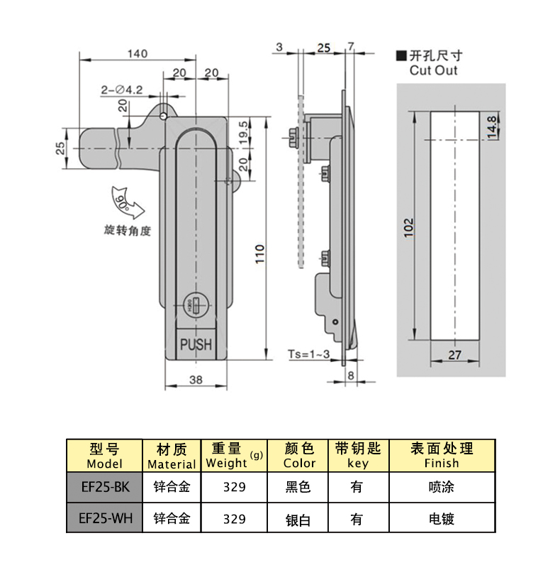 EF25-BK плоский замок Цинковый сплав 110 Есть Распыление 1 Download