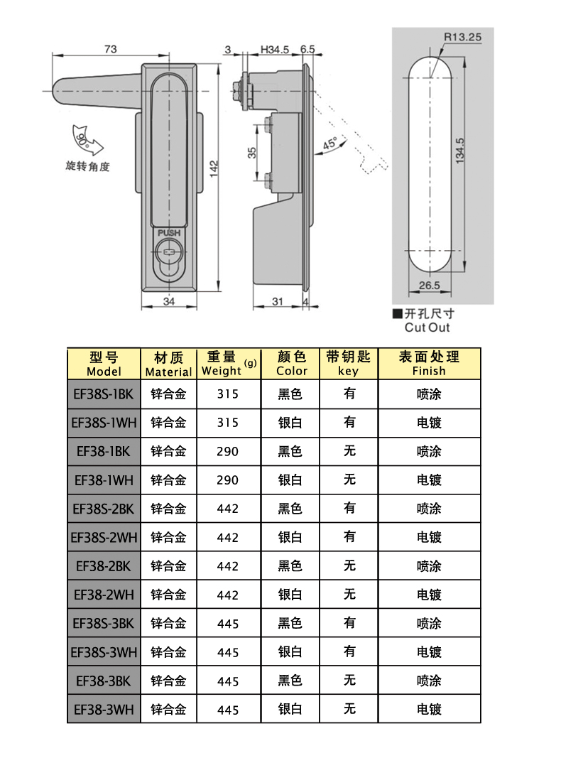 | EF38-S-1BK | плоский замок | Цинковый сплав | 142 | Есть | Распыление | 1 | Download |