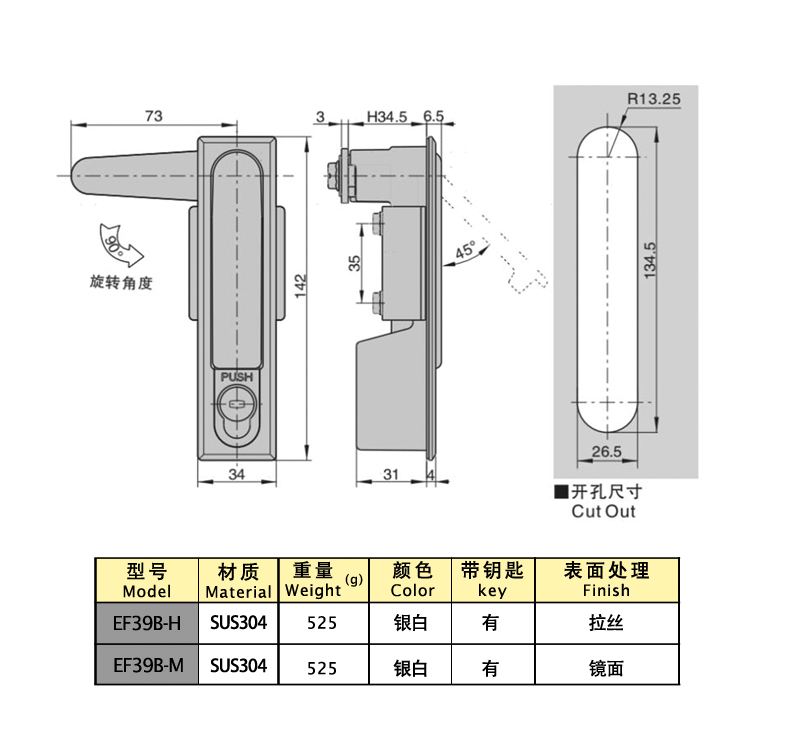EF39B-M плоский замок СУС304 142 Есть Зеркальный 1 Download