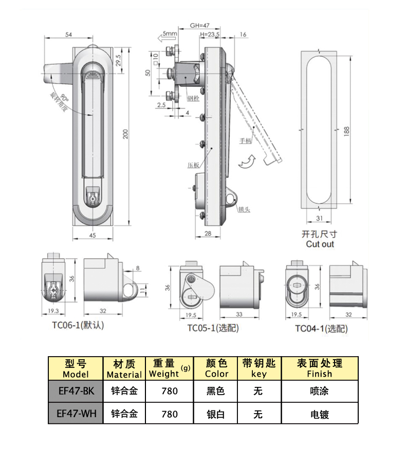 EF47-BK плоский замок Цинковый сплав 200 Нет Распыление 1 Download