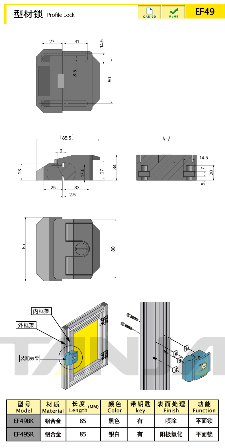 Примечание: Применяется к рамным конструкциям алюминиевых профилей