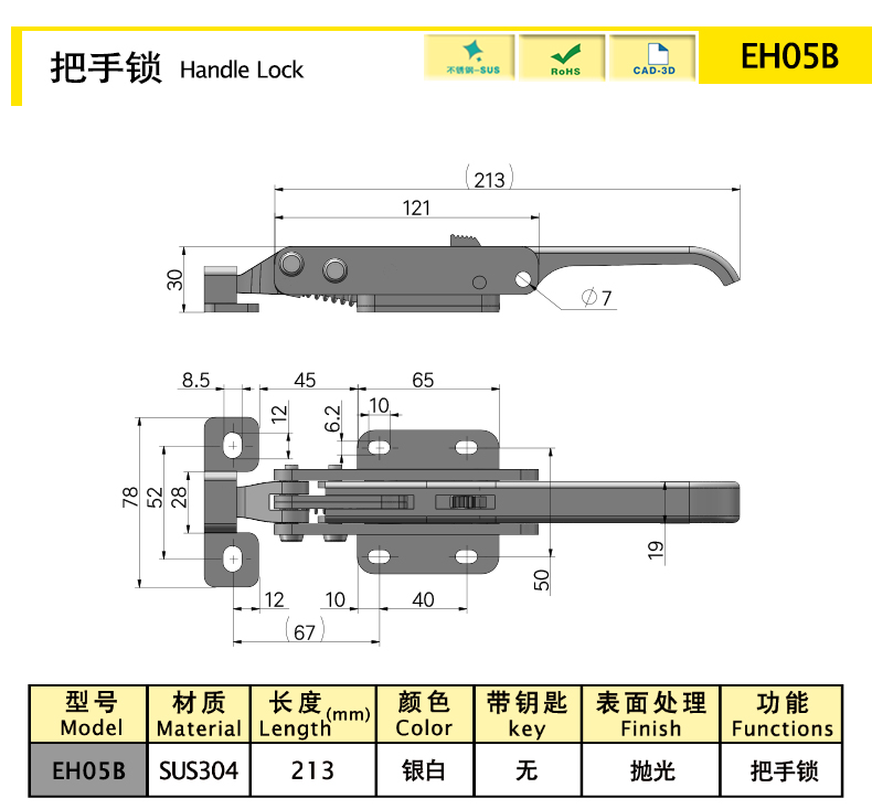 | EH05B | Замок руки | СУС304 | 213 | Серебряный | Нет | Полировка | 700.01 | Download |