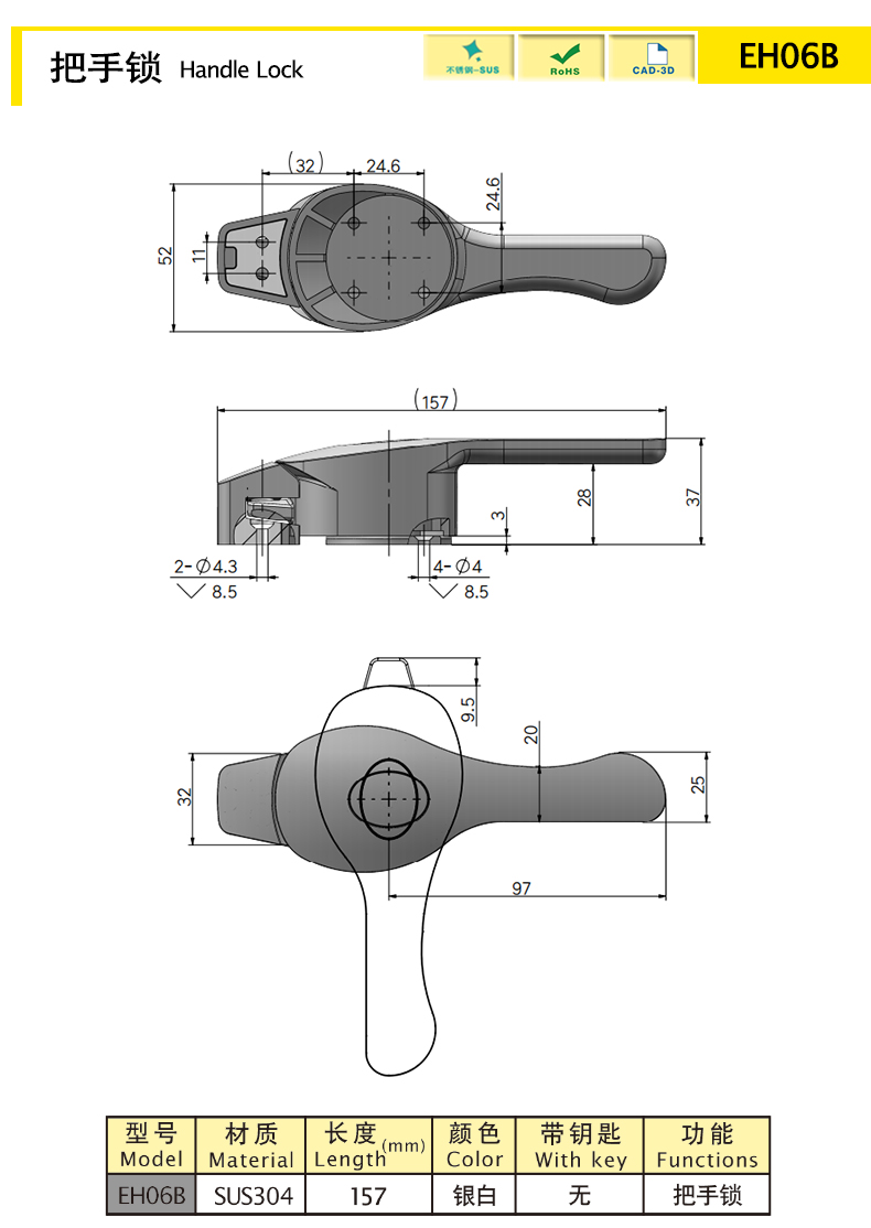 | EH06B | Замок. | СУС304 | 157 | Серебряный | Нет | Полировка | 524.51 | Download |