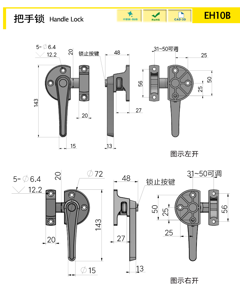 EH10B-L Замок. sus304 143 Серебряный нет Полировка 536.23 Download