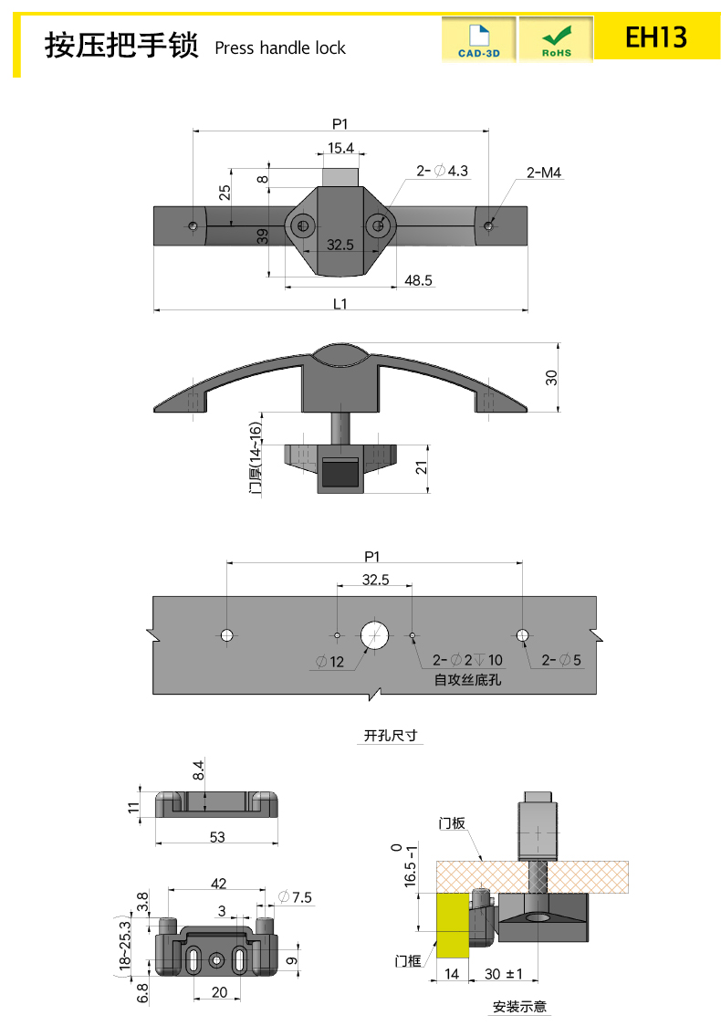 | EH13-1PC | Замок. | Цинковый сплав | 162 | Серебряный | Жемчужный хром | 154.01 | Download |
