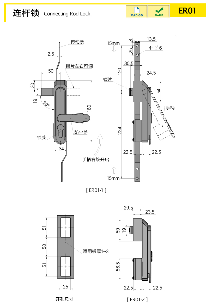 Два способа замыкания: шатунный трехточечный замок (ER01 - 1), одноточечный замок (ER01 - 2), безопасный и надежный для удовлетворения разнообразных потребностей