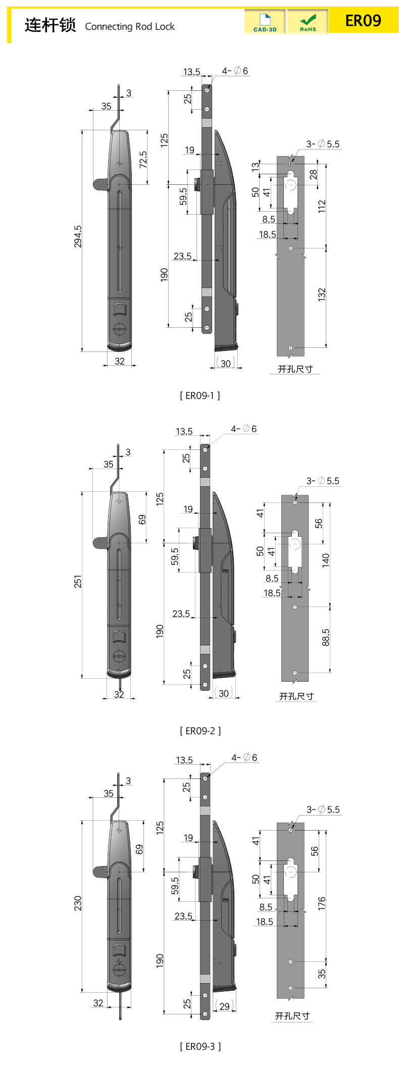 Верхние и нижние два шатуна работают вместе с языком замка, дверь шкафа коробки образует три точки напряжения, эффект блокировки прочный, а дверная панель нелегко трясти