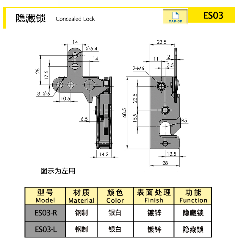 ES03-L Скрыть замок Сталь Серебряный Оцинкование 107.51 Download