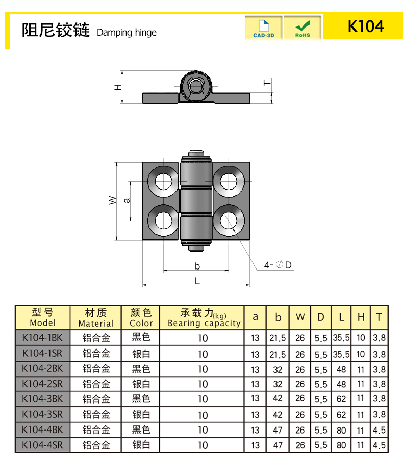 | K104-4SR | Алюминиевый сплав | 80 | Серебряный | 36.02 | Легкое затухание | Download |
