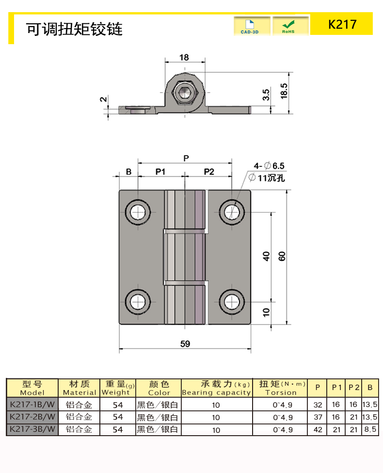 | K217-2BK | Алюминиевый сплав | 60 | Чёрный | 71.21 | Регулируемый крутящий момент | Download |