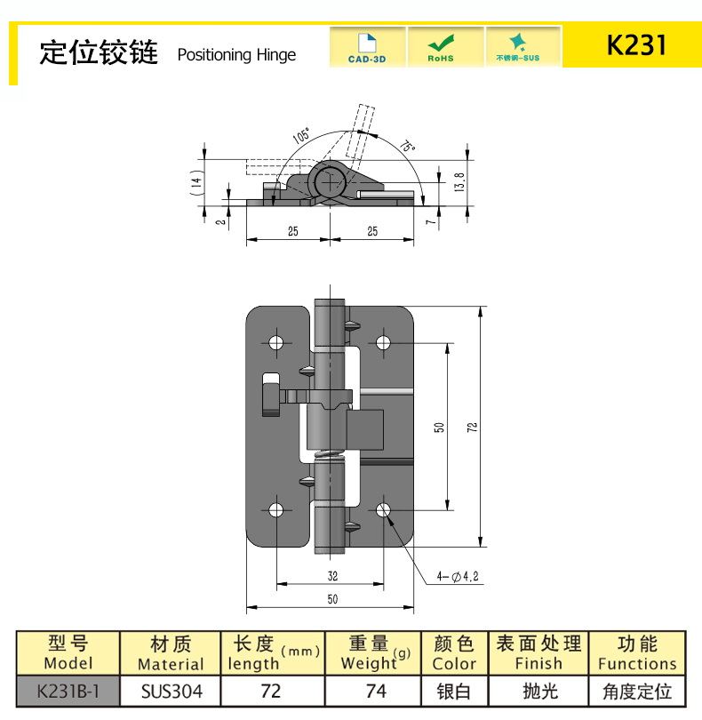 Угол позиционирования 0° / 75° / 180°