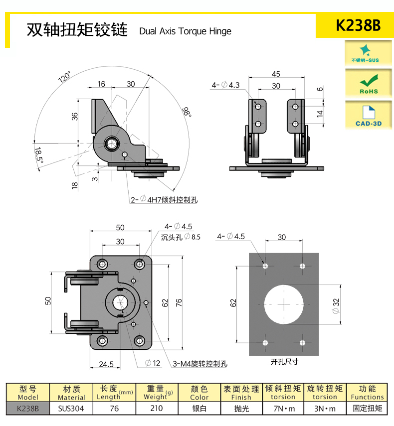 | K238B | СУС304 | 76 | Серебряный | 213.91 | Постоянный крутящий момент | Download |