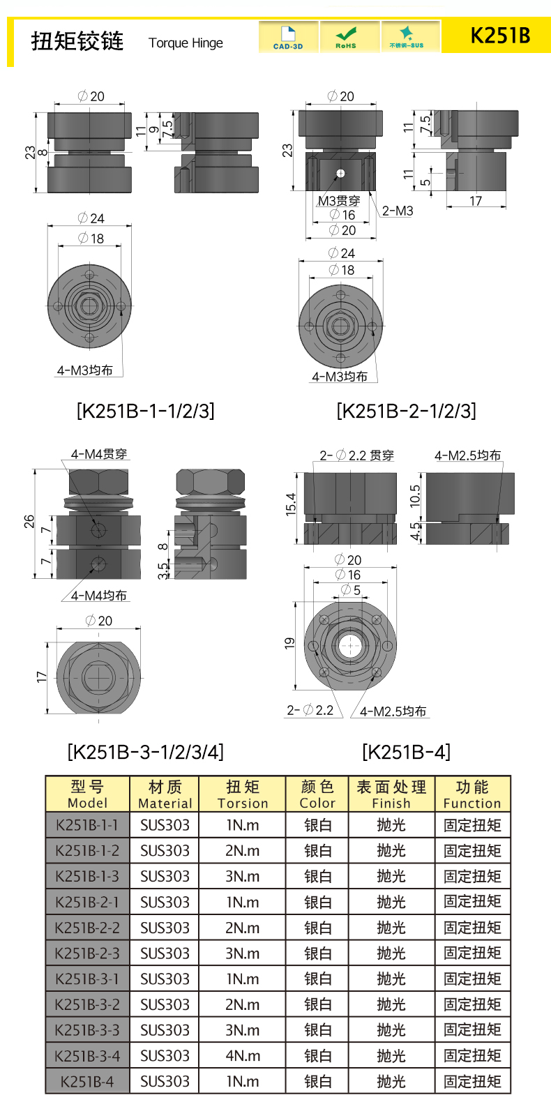 | K251B-4 | sus303 | Серебряный | 1 | Постоянный крутящий момент | Download |