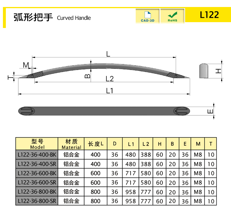 | L122-36-800-BK | Алюминиевый сплав | 840.01 | 800 | 36 | 958 | 777 | 60 | 36 | m8 | 10 | 20 | Черный | Download |