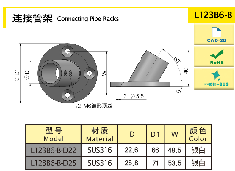 L123B6-B-D25 53.5 СУС316 1 25.8 40 71 Серебряный Download