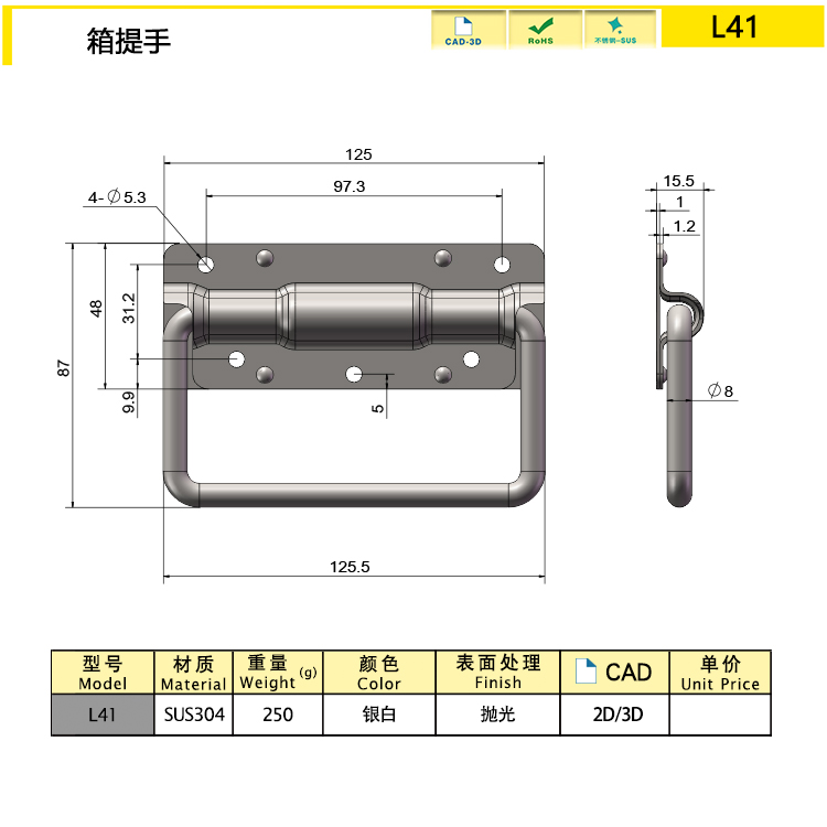 L41B 250 Серебряный СУС304 Ручка коробки Download
