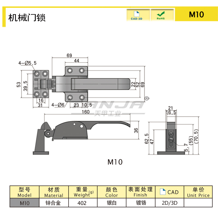 M10 Замок руки Цинковый сплав 192 Хромирование 396.01 Download