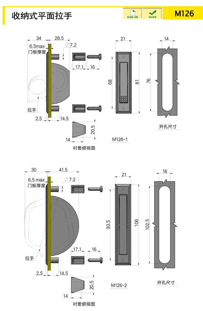 M126 - 1: ABS, M126 - 2: ABS + Цинковые ручки Конструкция встроенной установки, вывихнутая при нажатии при использовании после установки, без необходимости скрывать