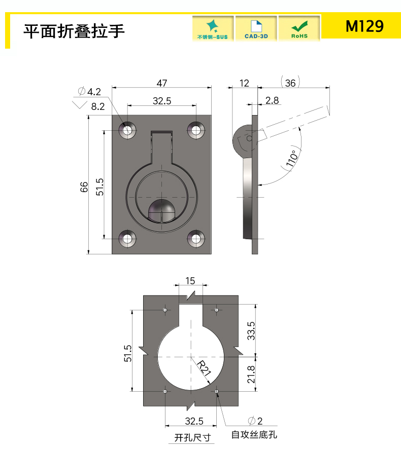 | M129 | / | Серебряный | 66 | sus304 | Ручка плоская | Download |