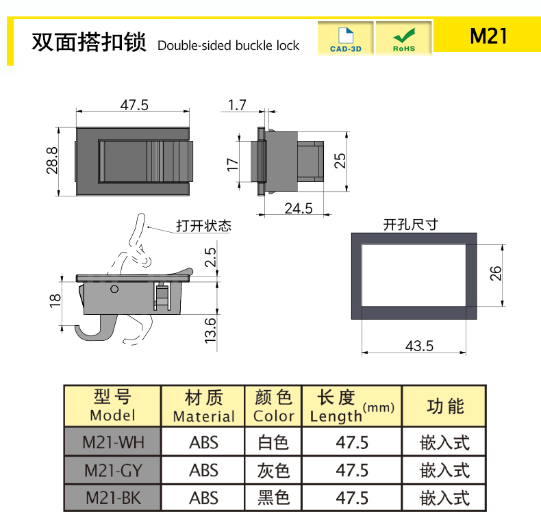 Миниатюрный плоский замок, подходящий для использования в меньшем пространстве, простая структура, удобное открытие и закрытие