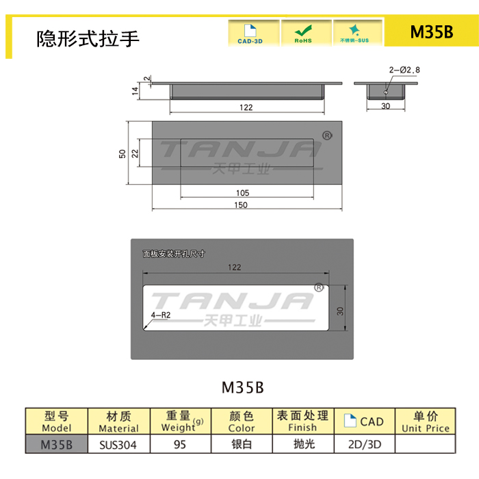 | M35B | 107.31 | Серебряный | 150 | СУС304 | Ручка плоская | Download |