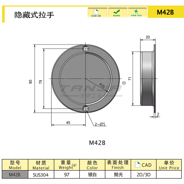 M42B 97.19 Серебряный 90 СУС304 Ручка плоская Download