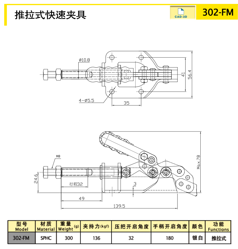 | model | Вес (g) | Зажимная сила (kgf) | Функции | Материалы | Цвет | 3D |