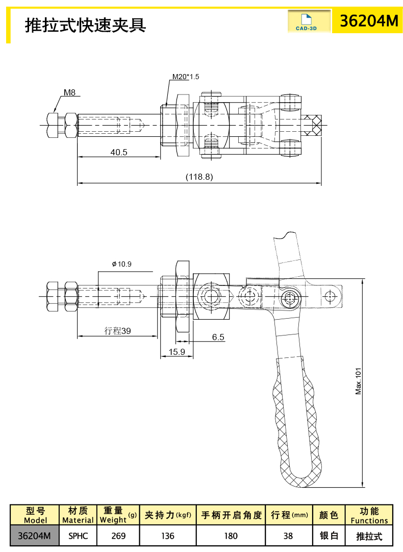 | model | Вес (g) | Зажимная сила (kgf) | Функции | Материалы | Цвет | 3D |