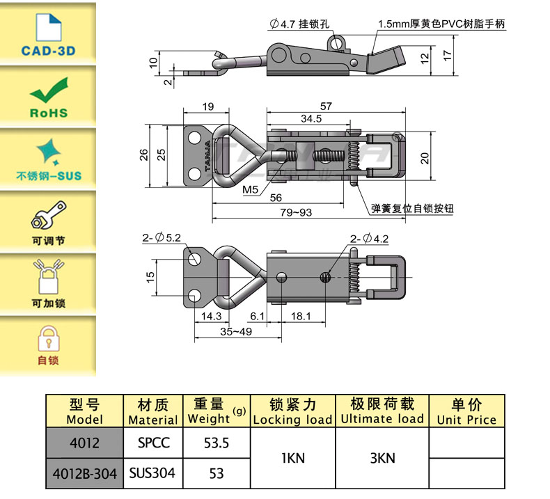 Застежка 4012 с замком, может быть с замком или пломбой