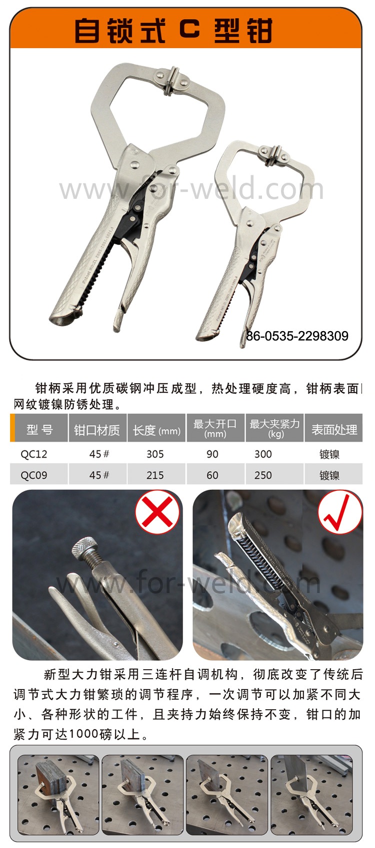 Новые мощные плоскогубцы используют трехступенчатый механизм саморегулировки, изменяя традиционную регулировку мощных плоскогубцев громоздкой процедуры регулировки, одна регулировка может зажимать различные размеры, различные формы деталей, а сила захвата остается неизменной, сила зажима плоскогубца может достигать более 1000 фунтов.