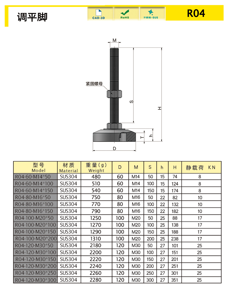 | R04-80-M16-150 | sus304 | 80 | m16 | 150 | 182 | 22 | 1 | 10 | Download |