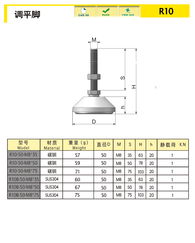 | R10B-50-M8-50 | sus304 | 50 | m8 | 75 | 78 | 20 | 57.51 | 1 | Download |