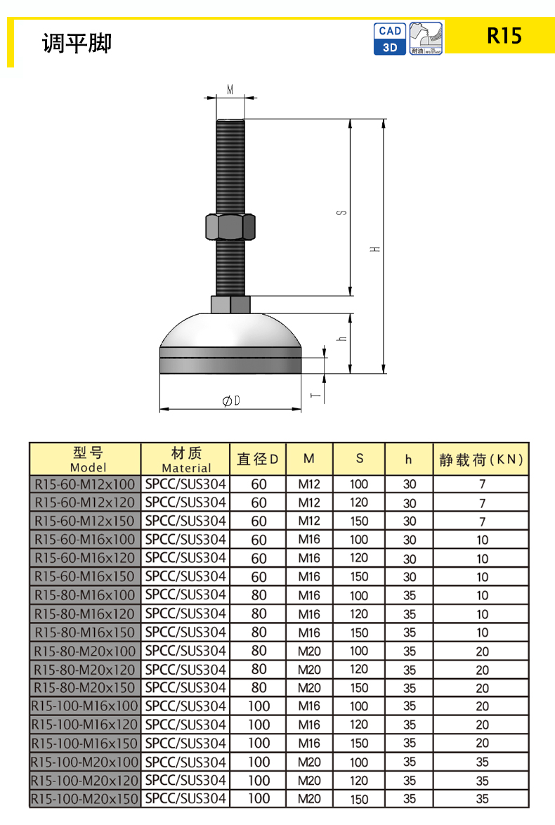 | R15-60-M16-100 | Сталь/нержавеющая сталь | 60 | m16 | 100 | 30 | 409.17 | 10 | Download |