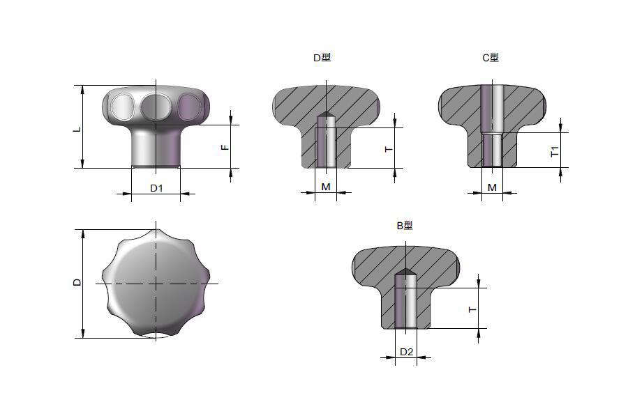 | T50B-D50-M10-D | 50 | 22.5 | m10 | 20 | 20 | Гайка | 1 | СУС304 | Download |
