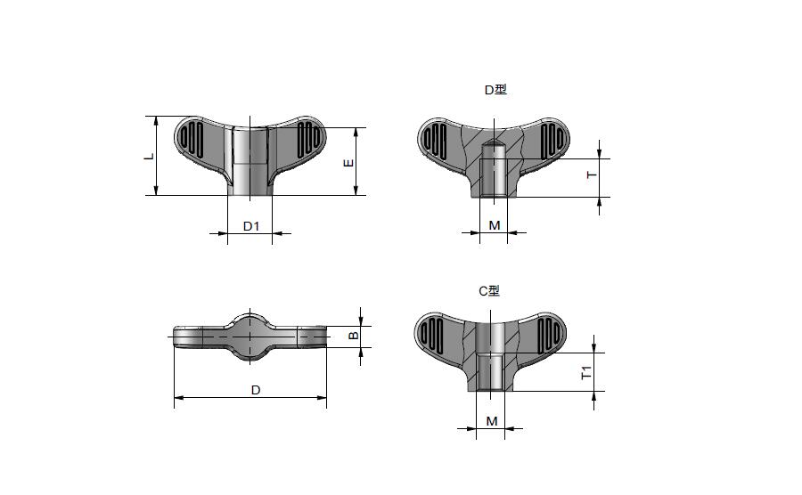 | model | Диаметр D | Д1 | М | Т1 | Б | Е | Особенности | Вес (g) | Материалы | Т | 3D |